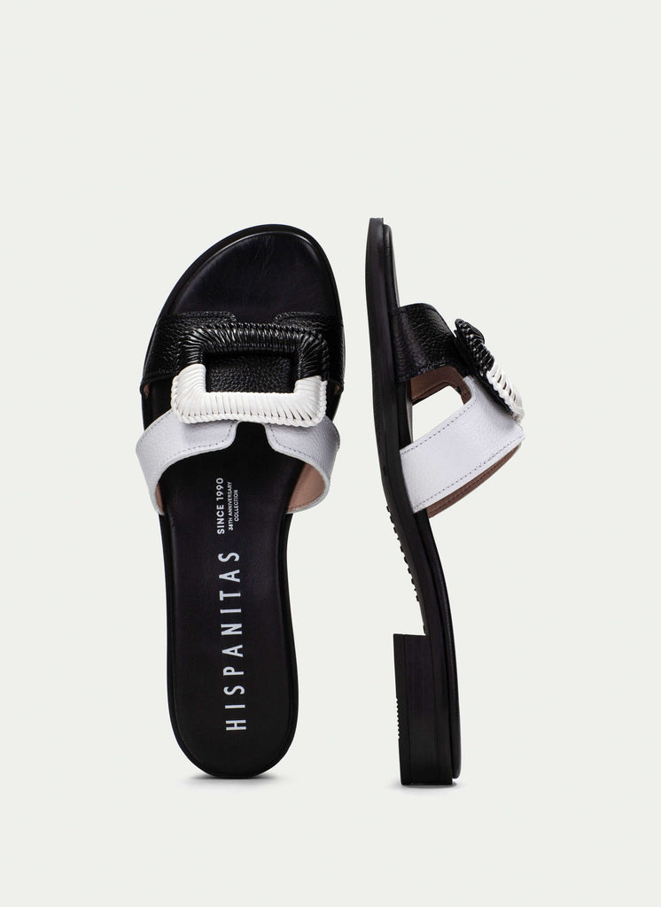 Hispanitas Ladies Black/White Leather Mule Slider Sandal 253881