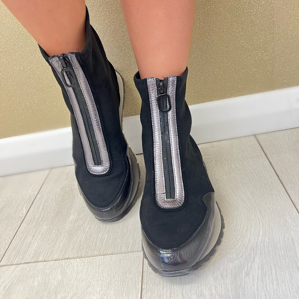 Hispanitas Ladies Pewter/Black Zip-Front Flat Ankle Boot 254354