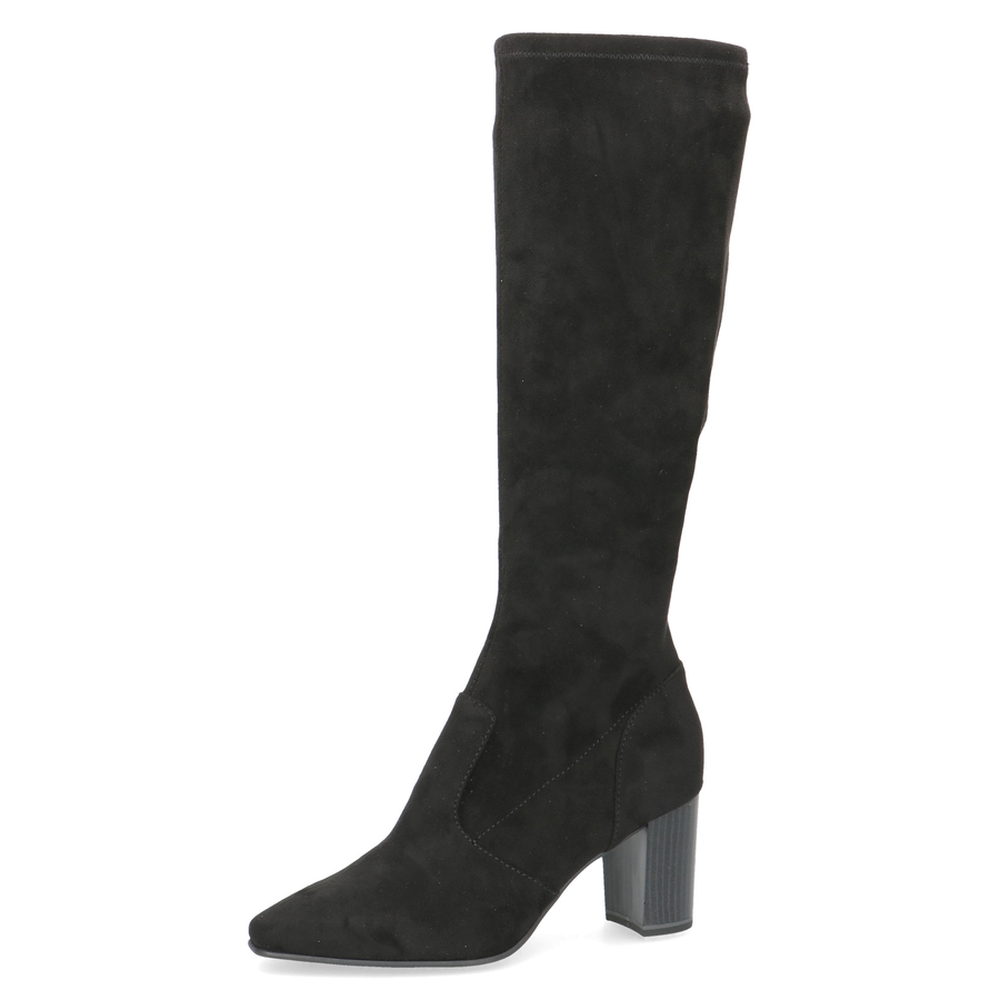 Caprice Black Faux Suede Sock-Fit Heeled Knee Boot 25520-41 044