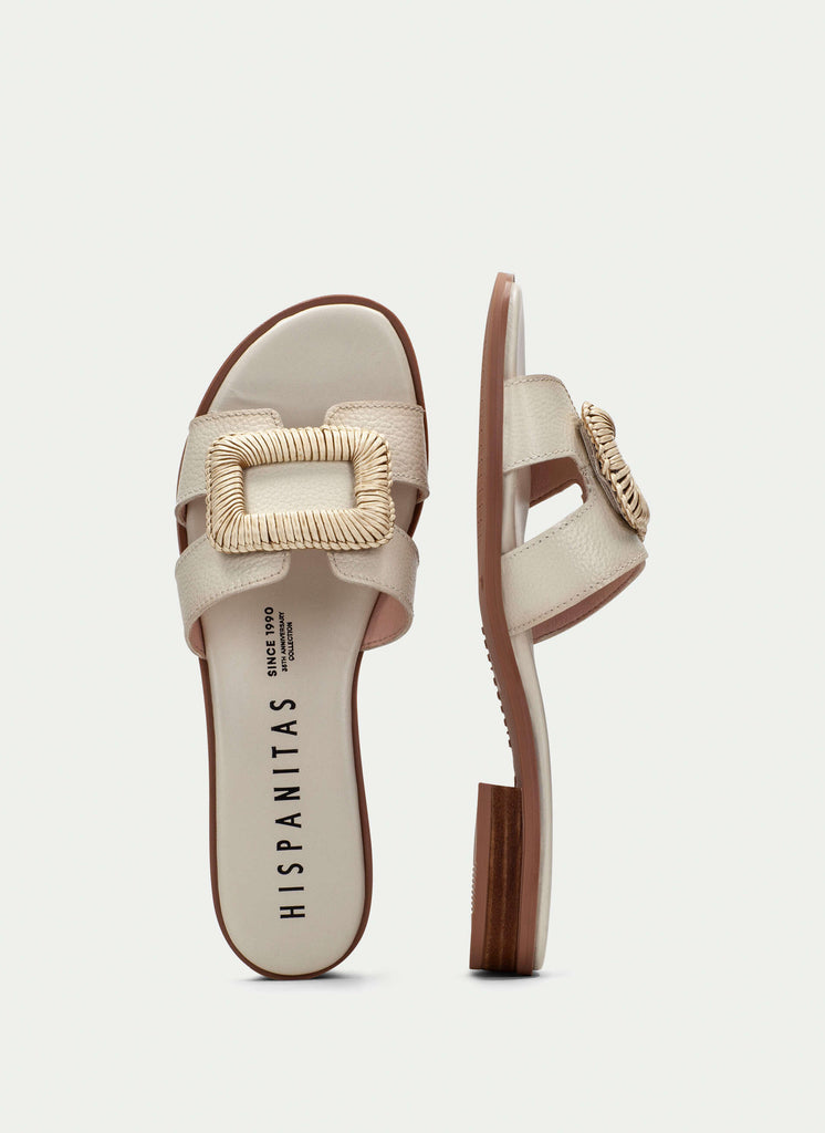 Hispanitas Ladies Beige Leather Mule Slider Sandal 253881