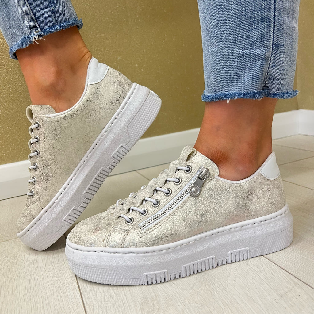 Rieker Ladies Beige/Gold Lightweight Bungee Lace/Zip Trainer M1953-60 - is backordered and will ship as soon as it is back in stock.