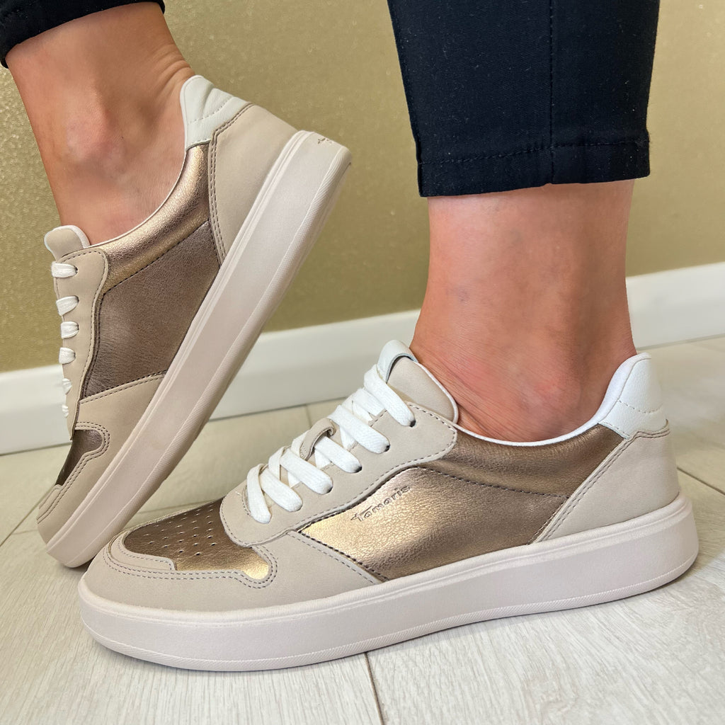 Tamaris Gold/Taupe Combination Laced Trainer 23763-45 990